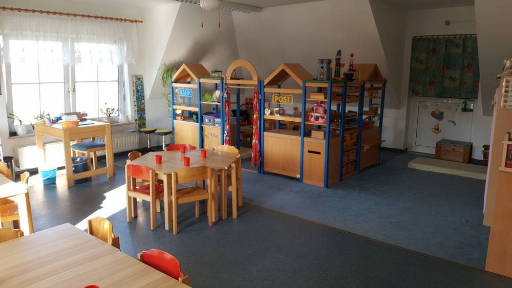 Unsere "kleine Gruppe" hat ihr Domizil im Erdgeschoss neben dem Büro und der Küche. Die "mittlere Gruppe" befindet sich in der 1.Etage. Im oberen Stockwerk ist die "große Vorschulgruppe" untergebracht. In unserem großen Garten haben die Kinder Möglichkeiten, sich zu verstecken, balancieren, schaukeln und vieles mehr.
