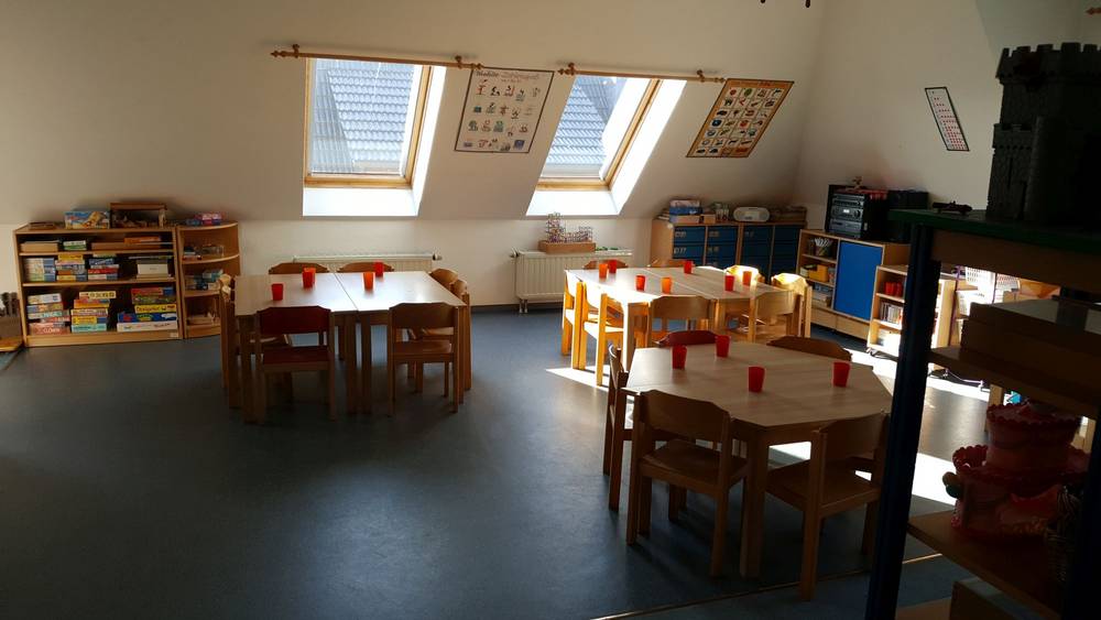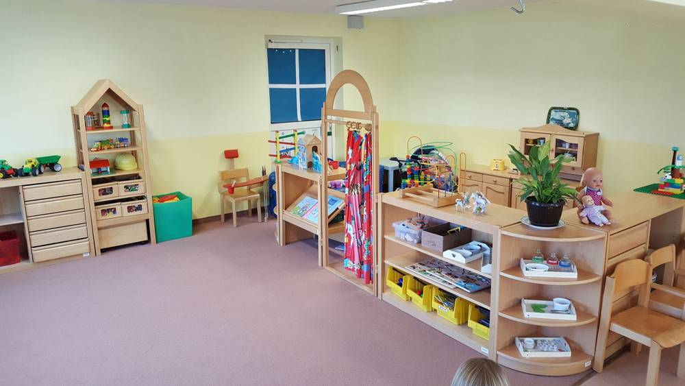 Jede Gruppe verfügt über einen eigenen Gruppenraum für Mahlzeiten, Angebote, Freispielzeit und Mittagschlaf.